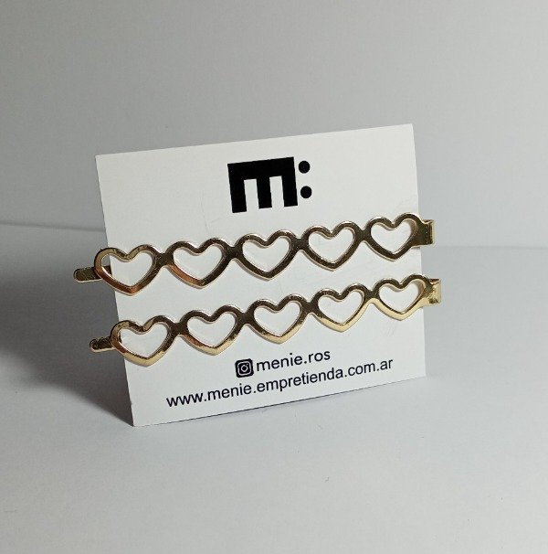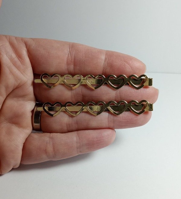 Hebillas CORAZONES en acero dorado, de 7 cm de largo.