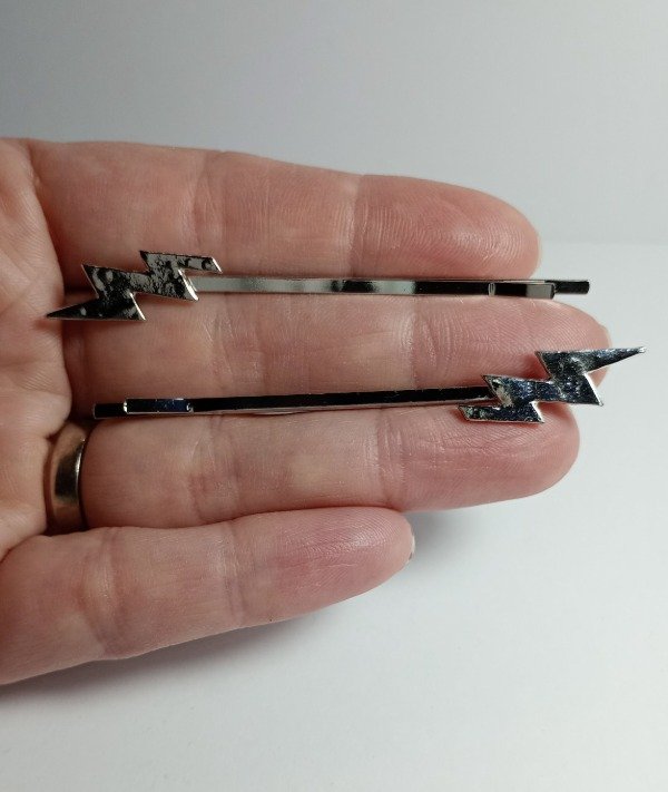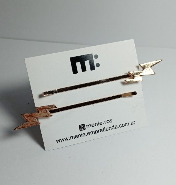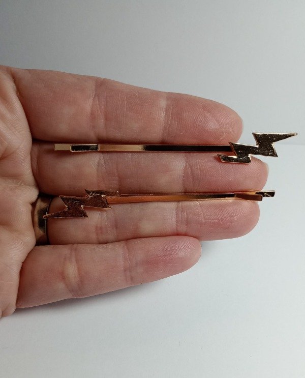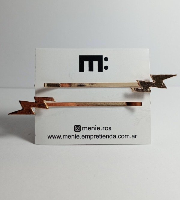Par de Hebillas RAYITO en acero quirúrgico y acero dorado, de 6 cm de largo.