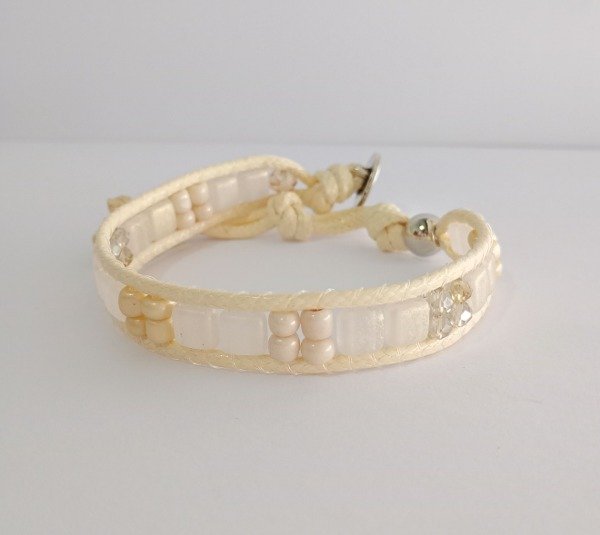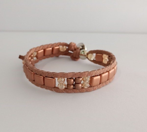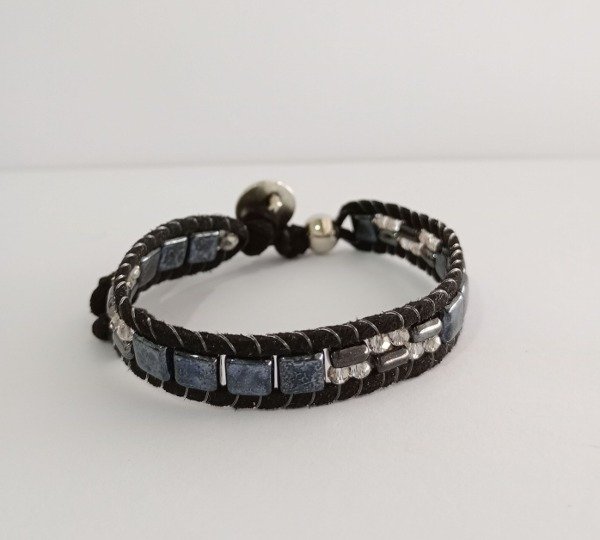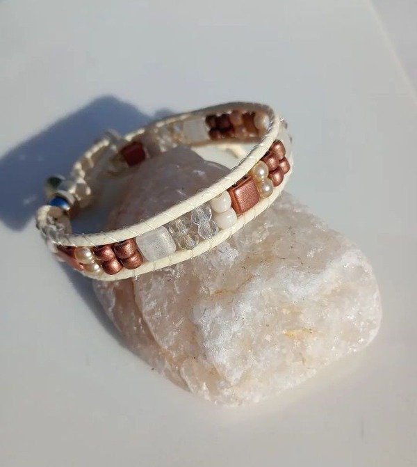 Brazalete MËU #1, confeccionado en cuero, cristales y MATUBO Importadas.