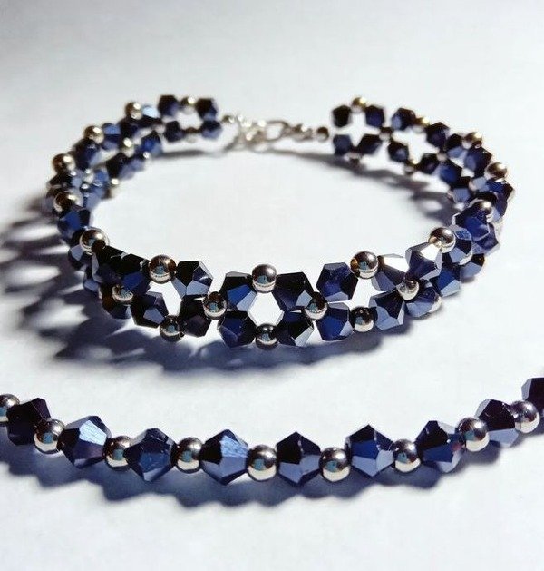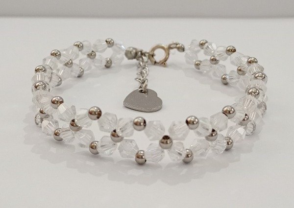 Brazalete SKY, en cristales, acero quirúrgico y plata.