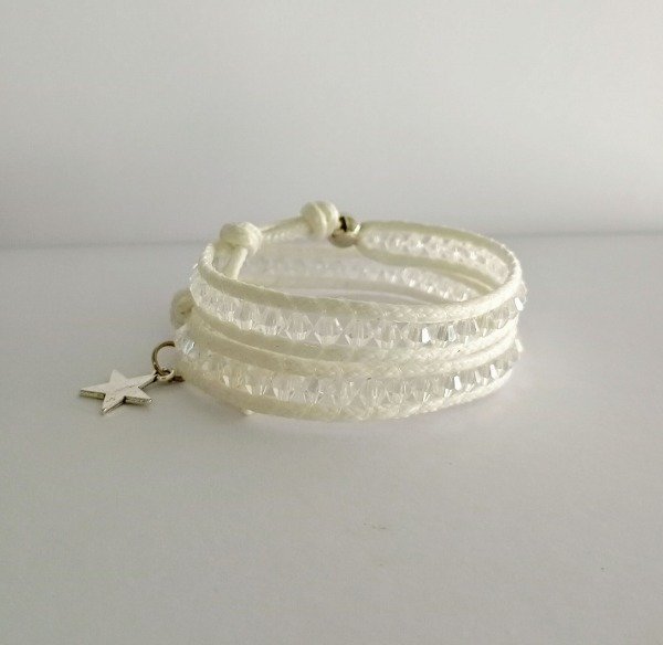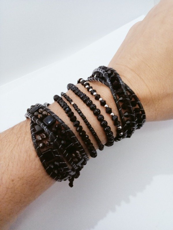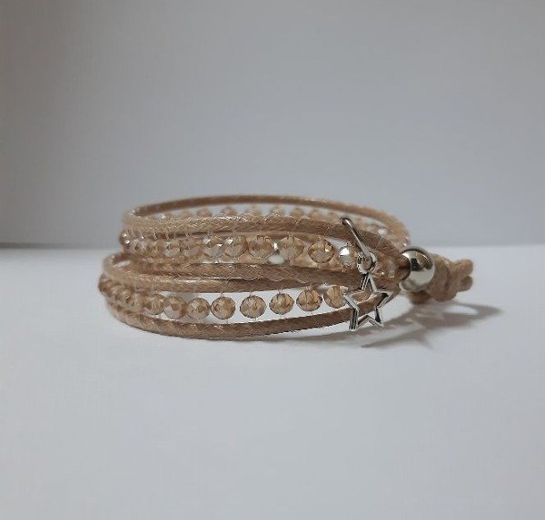 Brazalete TULUM #2, confeccionado en cuero y cristales trenzados a mano. 2 vueltas.