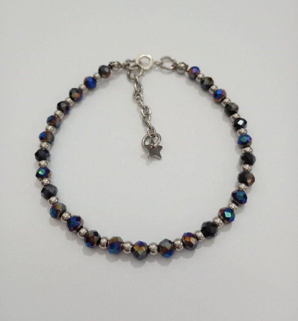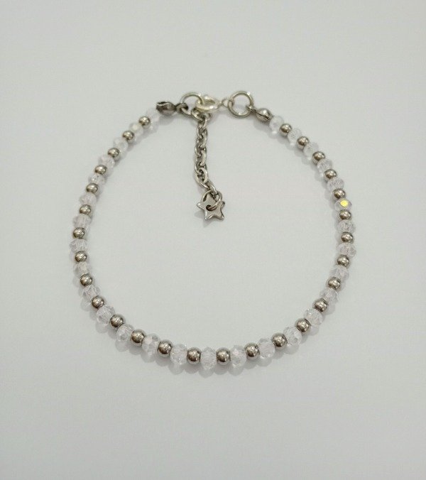Pulsera LUCI, confeccionada en cristales, acero quirúrgico y plata.